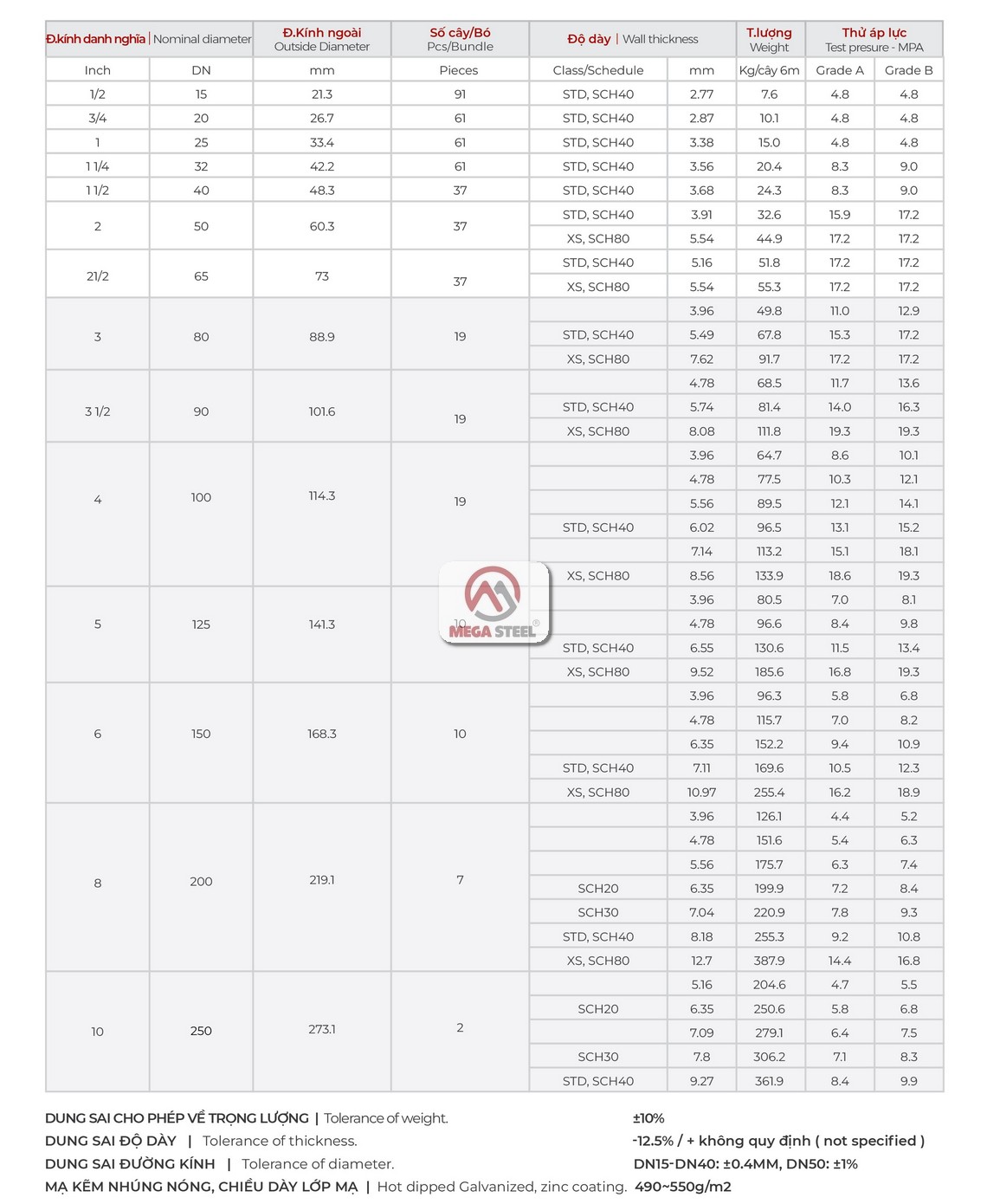 (*) Tiêu chuẩn /Standard: ASTM A53, ASTM A500, ASTM A123.